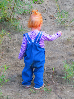 Since the day was absolutely beautiful, and I felt we had totally wasted the awesome weather, I decided to take the kids on a walk around the farm. Behind the barns there's a really nice trail that goes through the bush. I took all 5 kids with me. Seth held my hand the whole time. What a sweetheart! Courtney held my hand most of the time too. Eric told me that Paul and him had made a trail in the bush. Did I want to see it? Sure! So I went bush whacking with the kids. That was a blast! It was quite a long trail and we had to stomp down a lot of 'spikes' as the kids termed it. We ended up coming out of the bush at the end of the driveway.